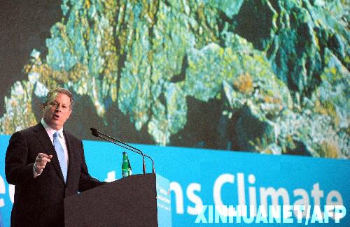 12月12日,美国前副总统戈尔在波兰波兹南举行的联合国气候变化大会上发表讲话。联合国气候变化大会13日凌晨在波兹南落下帷幕。会议决定启动“适应基金”,并通过了2009年工作计划,这标志着2009年气候变化谈判进程正式启动,以致力于2009年年底在丹麦哥本哈根就2012年后应对气候变化达成新协议。 新华社/法新