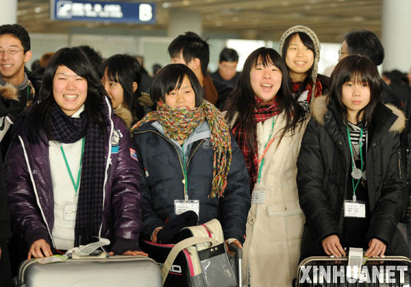 12月18日,来自日本大阪的高中生走出北京首都国际机场。 当日,作为“中日青少年友好交流年”框架下日方派遣的最后一个大型访华团组,第2批日本青少年友好使者代表团一行1000人陆续抵达北京。除北京外,代表团将分为七个分团,分别赴浙江、辽宁、山东、广东、陕西、江西、天津等地参观访问,与中国青少年广泛交流,深入了解中国各地的情况,并出席中日双方在京联合举办的“交流年”中方闭幕式活动。 新华社记者 金良快摄