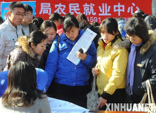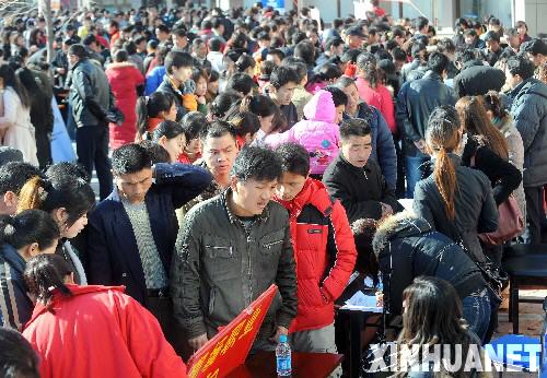 3月6日,北京朝阳区在王四营乡举办专场招聘会,吸引了众多农民工和失业人员参加。 新华社记者罗晓光摄
