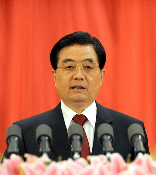 资料图片:2008年12月18日,纪念党的十一届三中全会召开30周年大会在北京人民大会堂隆重举行。中共中央总书记、国家主席、中央军委主席胡锦涛在会上发表重要讲话。新华社发