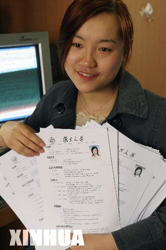 资料图片:一名大学毕业生在展示自己尚未投递的求职简历。