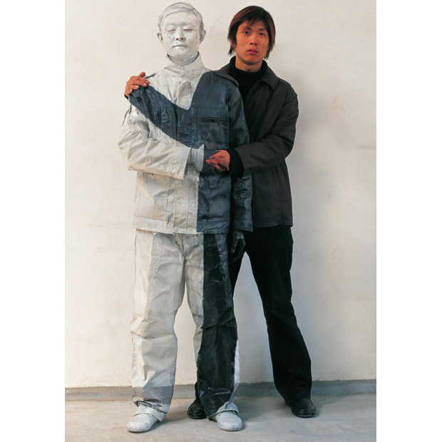 刘勃麟今年36岁,籍贯中国山东,将自己的身体当做绘画材料,将涂料涂边全身以融进他身后的背景中。