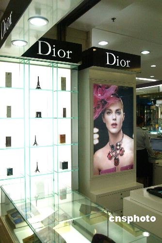 2008年日,美国演员莎朗·斯通在法国戛纳电影节接受采访时,竟称四川大地震是一件有趣的事情,还没人性地称其为“报应”。此言一出,引来民愤连连,立刻发出“抵制莎朗·斯通”的倡仪。近日,迪奥中国发表声明,撤销及停止任何与莎朗-斯通合作。图为在商店内的迪奥展台已经更换了宣传海报。中新社发 富田 摄