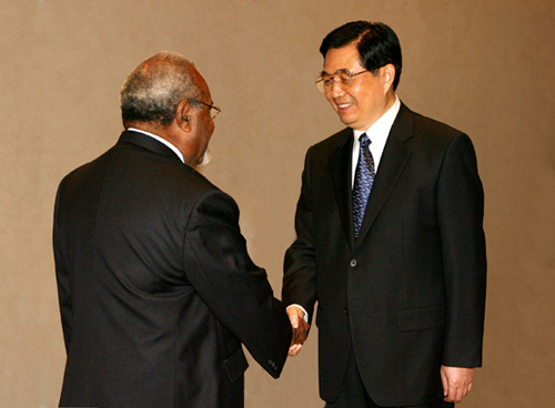 9月7日,国家主席胡锦涛在澳大利亚悉尼会见巴布亚新几内亚总理索马雷。 新华社记者 黄敬文 摄
