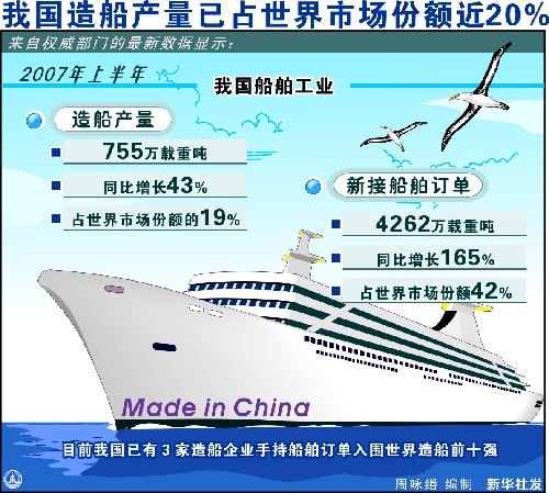 图表:我国造船产量已占世界市场份额近20% 新华社发