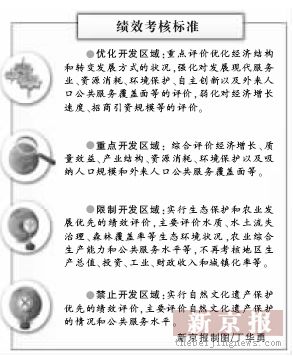 马凯阐释各地政府绩效评价标准,市县级无需划定主体功能区国家发改委网站昨日(12日)发布了发改委主任马凯之前在全国主体功能区规划编制工作电视电话会议上的讲话,在各地政府最为关注的绩效评价方面,马凯明确表示,被划为限制开发的区域,将实行生态保护和农业发展优先的绩效评价,不再对地区生产总值、投资、工业、财政收入和城镇化率等指标进行考核。
