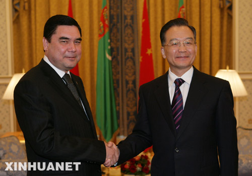 11月4日,国务院总理温家宝在阿什哈巴德同土库曼斯坦总统别尔德穆哈梅多夫举行会谈。 新华社记者黄敬文摄