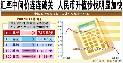 11月7日,中国外汇交易中心公布,人民币对美元汇率中间价突破7.45关口,以7.4476再创汇改以来的新高,单日升值幅度达到101个基点,这是今年以来人民币汇率第68次创新高。按照汇改时8.11的汇率计算,汇改以来人民币累计升值幅度已达到8.18%。