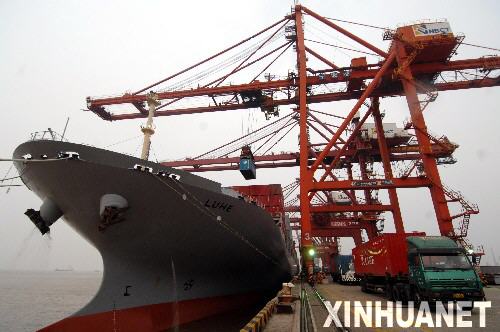 资料图片:2007年7月16日,一艘货轮在宁波北仑港装卸集装箱。党的十六大以来,我国紧紧抓住加入世贸组织的重大机遇,积极参与经济全球化,着力提高对外开放水平,基本形成全方位对外开放格局。对外开放促进了国民经济增长,加快了产业升级,扩大了就业,增加了税收,为实现全面建设小康社会战略目标、构建和谐社会提供了重要保障。新华社发