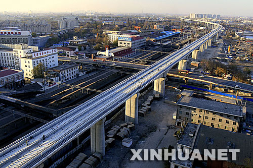 11月10日在天津拍摄的建设中的京津城际轨道。新华社发(谢津生 摄)