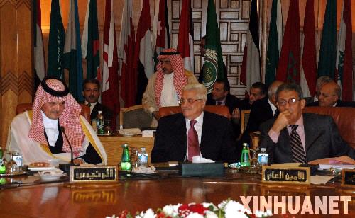 11月23日,阿拉伯国家联盟(阿盟)秘书长穆萨(前右)、巴勒斯坦民族权力机构主席阿巴斯(前中)和沙特阿拉伯外交大臣费萨尔(前左)在开罗的阿盟总部出席阿拉伯和平倡议委员会外长会议,就即将于27日在美国召开的中东问题国际会议进行磋商。阿拉伯和平倡议委员会当天在开罗总部召开外长会议,协调阿拉伯国家参加中东和会的相关立场。 新华社记者陈寂摄