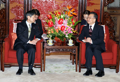 12月2日,国务院总理温家宝在北京中南海紫光阁会见来华出席首次中日经济高层对话的日本外相高村正彦。(新华社记者姚大伟摄)