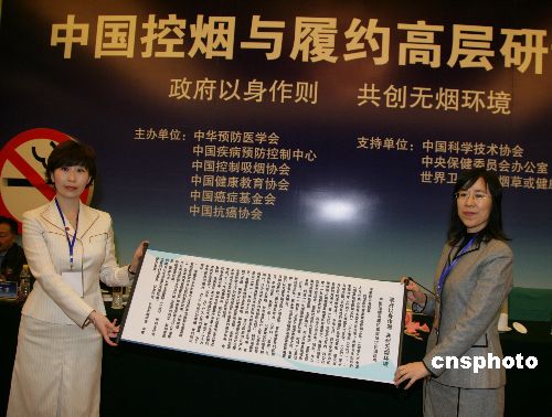 在此间举行的“中国控烟与履约高层研讨会”专家们签署的《政府以身作则共创无烟环境》倡议书称:为实现中国对世卫组织《烟草控制框架公约》和创办二00八“无烟”奥运的承诺,推进中国控烟工作进程,国家政府机关的办公场所必须率先做到全面禁烟,并鼓励各级政府办公机构制定政策,全面禁烟。 同时严格要求所属工作人员遵守在公共场所和工作场所禁止吸烟的规定,鼓励、帮助吸烟者戒烟。