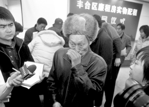 在摇号现场,家住大红门的李文才老人不住地擦眼泪,“做梦都没有想到我能搬进两居室的楼房里。”李文才告诉记者,他已经64岁了,爱人长年有病,两个孩子都在上学,大女儿才上初三,一家四口靠低保金生活。由于没有房子,一家人一直借住在岳父家只有18平方米的房子里,每天睡觉都要搭临时铺。“这次搬入新房子后,每月只需要交80多块钱的房租,这个我能交得起,我还可以为孩子们添一个新书桌。”说到这儿,李文才又流出了眼泪,“回去告诉老伴儿去,明天要带她一起去挑房子。”(记者 王晴)