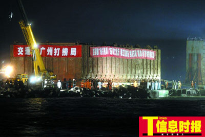 结束了3天3夜的岸边等候 海上整体打捞工作划句号