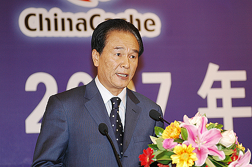 中国网络媒体2007年度新闻风云榜揭晓典礼开始,图为国务院新闻办副主任蔡名照在中国网络媒体新闻风云榜揭晓仪式上的致辞。陈竞超 摄