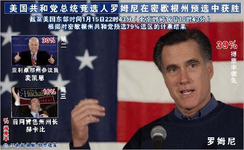 图表:美国共和党总统竞选人罗姆尼在密歇根州预选中获胜 新华社发