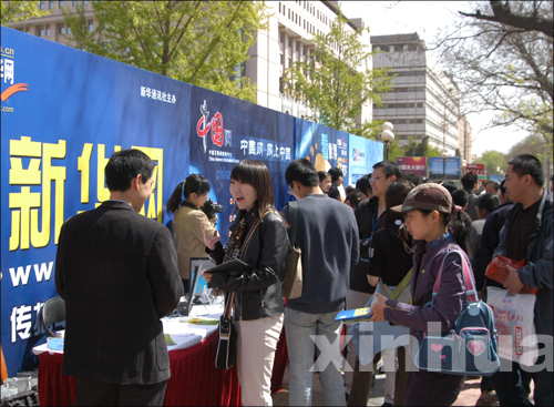 资料图片:2006年4月22日,100余家网站在京联合举办以“文明办网、文明上网”为主题的宣传日活动,以现场咨询、接受群众举报等方式清扫“网络垃圾”,倡导网络文明。
