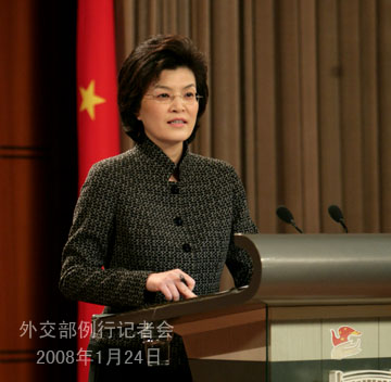 2008年1月24日下午,外交部发言人姜瑜举行例行记者会,就伊核问题六国外长会、苏丹达尔富尔问题、中越关系等回答记者提问。