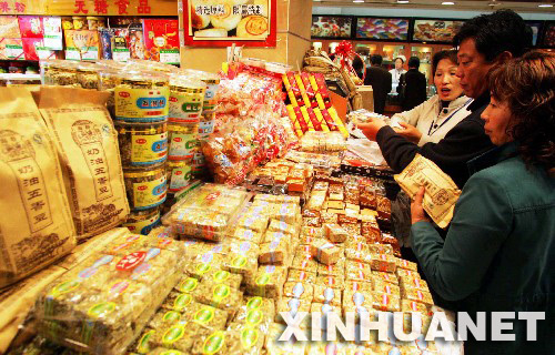 2007年11月13日,消费者在上海南京路上的一家食品商店内选购商品。 新华社记者 裴鑫 摄