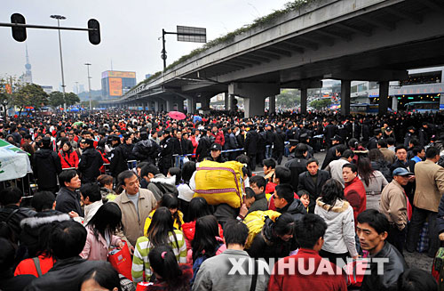 1月27日,广州火车站广场边的道路成为临时候车场,众多进不了候车室的旅客在这里候车。受恶劣天气影响,广州火车站大多数旅客列车晚点、停运,截至记者发稿时,广州火车站滞留旅客超过17万。 新华社记者陈学思摄