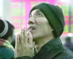 连日来,我国一些地区遭遇了严重的雨雪灾害,但股市交易基本正常。图为1月31日,在武汉一证券公司营业厅,一股民专注地盯着大盘。本报传真图