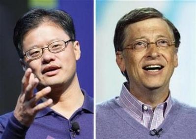 左为雅虎创办人及现任CEO杨致远,右为微软董事长比尔·盖茨