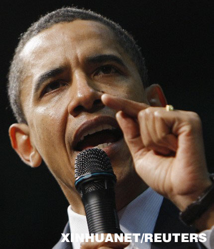 2月10日,美国民主党总统竞选人贝拉克·奥巴马获得第50届格莱美奖最佳诵读专辑奖。这是2月9日奥巴马在美国缅因州班戈讲话的照片。 新华社/路透