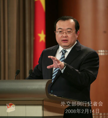 2008年2月14日下午,外交部发言人刘建超主持例行记者会,就北京奥运会、达尔富尔、缅甸、日本饺子事件等问题回答记者提问。