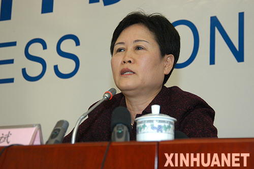 北京奥组委市场开发部部长袁斌回答记者提问 新华网 张泳摄