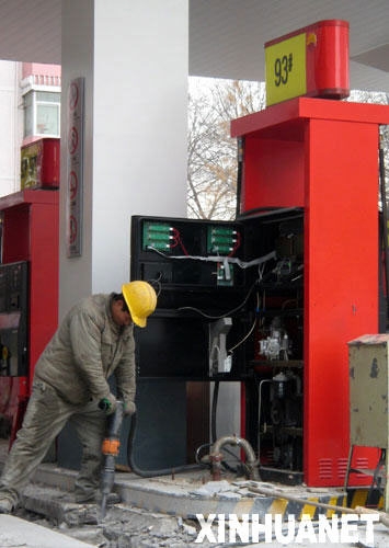 资料图片:1月13日,在北京一处加油站内,工人正在对加油站实施油气回收工程改造。北京市发展和改革委员会经济运行综合处处长王英建1月9日表示,从2008年3月1日起,北京所有加油站将实现国Ⅳ标准油品供应。北京从2008年1月1日起正式执行机动车燃油国Ⅳ标准。机动车燃油国Ⅳ标准相当于欧Ⅳ标准,可进一步减少机动车排放污染,有利于改善空气质量。新华社发(何璐璐摄)