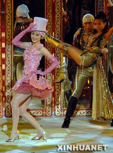 资料图片:2007年6月30日晚,庆祝香港回归祖国十周年文艺晚会在香港会展中心举行。这是艺人陈慧琳(左)在表演。 新华社记者 公磊 摄