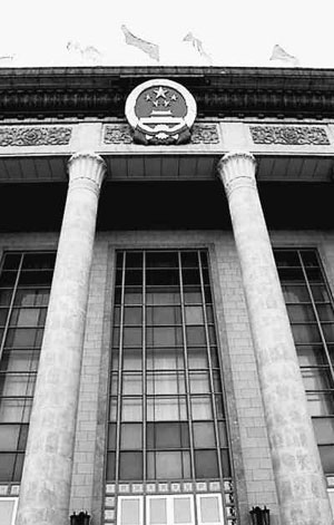 人民大会堂国徽高悬期待代表。 (资料照片)