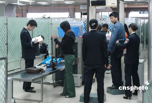2008年3月13日,南昌昌北机场。据悉民航总局为保障航空安全,规定从3月11日起,所有液态物品均不得随身携带上飞机。 中新社发 李国 摄