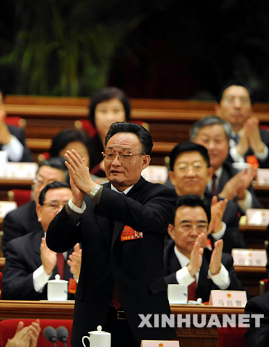再次当选全国人大常委会委员长的吴邦国、新当选国家副主席的习近平等,也向代表们鞠躬致意。