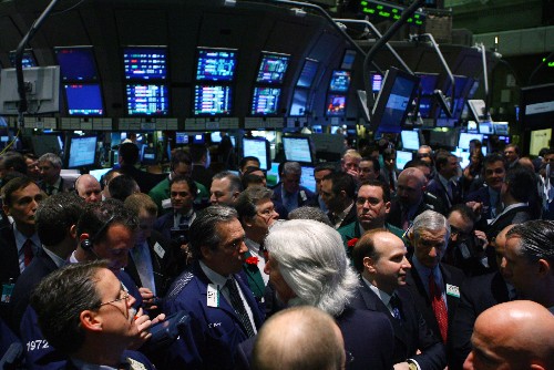 3月19日,美国纽约证券交易所内一片忙碌景象。当日,纽约股市宽幅震荡,三大股指终盘跌幅均超2%,其中道琼斯指数下挫近300点。 新华社记者 侯俊 摄
