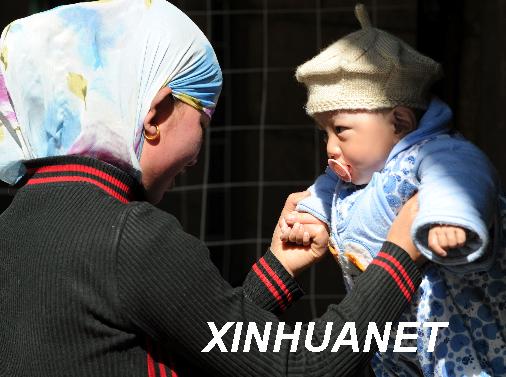 3月23日,甘肃临夏来拉萨做生意的马丽亚带着孩子亚古白在冲赛康的巷子里玩耍。目前,拉萨“3·14”打砸抢烧事件受害最严重的城关区冲赛康、夏萨苏、吉崩岗等社区居民的生活正在逐步恢复,一些商铺重新开门营业,生活设施也逐步得到修复。新华社记者格桑达瓦摄
