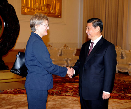 3月26日,国家副主席习近平在北京人民大会堂会见到访的美国哈佛大学校长德鲁·吉尔平·福斯特。新华社记者 高洁 摄