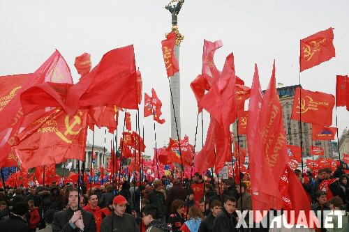 3月31日,在美国总统布什到访前,乌克兰左翼党派在首都基辅市中心举行大规模群众集会,反对乌克兰加入北约。 新华社记者宋宗利摄