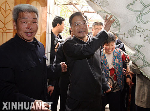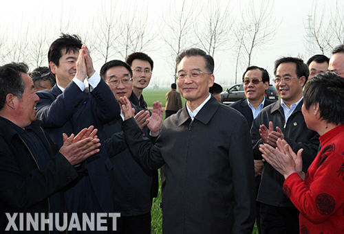 4月5日至6日,中共中央政治局常委、国务院总理温家宝在河北考察农业和春耕生产。这是4月6日,温家宝来到邯郸市永年县田寨村看望农户。 新华社记者刘卫兵摄