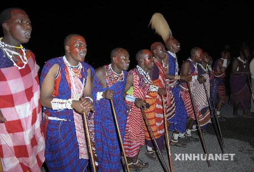 4月12日,运送北京奥运圣火的专机从阿根廷首都布宜诺斯艾利斯飞抵坦桑尼亚达累斯萨拉姆,当地群众热情表演欢迎圣火。13日,北京奥运会火炬境外第八站的传递将在这座坦桑尼亚的最大城市举行。 新华社记者戚恒摄