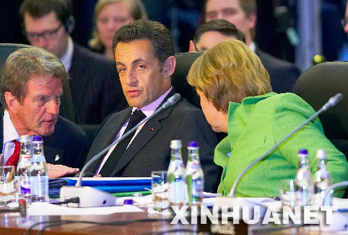 4月3日,在罗马尼亚首都布加勒斯特举行的北约峰会上,法国总统萨科齐(前中)在聆听德国总理默克尔讲话(前右)。由于遭到德国和法国的反对,此次北约布加勒斯特首脑会议上,乌克兰和格鲁吉亚加入北约“成员国行动计划”的申请未被接受。 新华社记者 徐金泉 摄 据法新社援引俄罗斯多家通讯社报道,俄罗斯武装部队参谋长4月11日警告说,格鲁吉亚和乌克兰加入北约的意愿将迫使俄罗斯采取军事行动。