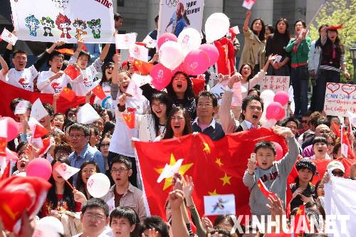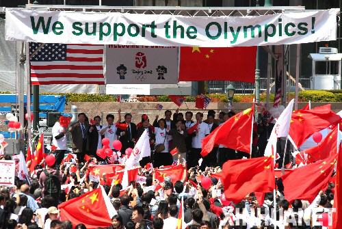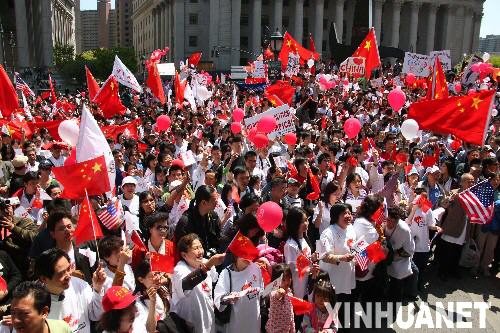 5月4日,数千名来自纽约及美国各地的中国留学生、华人华侨聚集在纽约弗利广场,举行主题为支持北京奥运的和平集会,表达“和平奥运”、“体育不应与政治挂钩”的心声。新华社记者侯俊摄 |