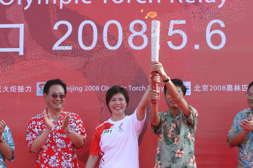 王丽芳(中)高举火炬 奥运官网记者缪礼东 摄