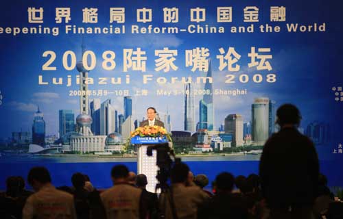 5月9日,“2008陆家嘴论坛”在上海开幕。出席本次论坛的中外金融界重要人士共有100多名。中国人民银行行长周小川和上海市市长韩正担任本次论坛联合主席,论坛主题是“世界格局中的中国金融”。 新华社记者 裴鑫 摄