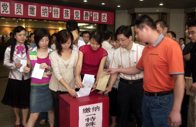 资料图片:南方报业传媒集团党委组织全体党员开展缴纳“特殊党费”向灾区献爱心活动,得到广大党员的积极响应 何洪伟 摄(中国新闻传媒网)