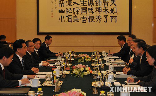 5月27日,国家主席胡锦涛与来访的韩国总统李明博举行小范围会谈。 当日,韩国总统李明博抵达北京,开始对中国进行为期4天的国事访问。 新华社记者 樊如钧 摄