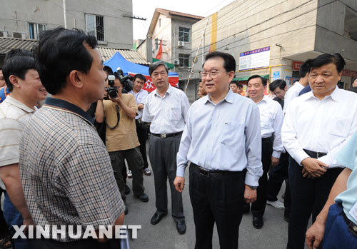 随后,李长春顶着烈日赶往德阳市罗江县金山镇。他来到一个受灾群众安置点,关切地询问受灾群众吃饭、饮水、居住、上学等方面情况。他嘱咐当地干部要深入细致地做好思想政治工作,特别要做好遇难者家属和受伤人员的心理安抚和思想疏导工作,帮助他们排忧解难,坚定战胜灾难的信心。