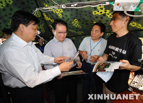 受胡锦涛总书记委托,中共中央政治局常委李长春6月1日和2日到四川地震灾区察看灾情,看望慰问奋战在抗震救灾第一线的新闻工作者。