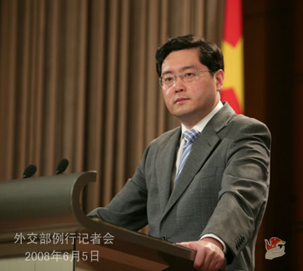 2008年6月5日下午,外交部发言人秦刚举行例行记者会,就习近平副主席出访、朝核、伊朗核、达尔富尔等问题答问。